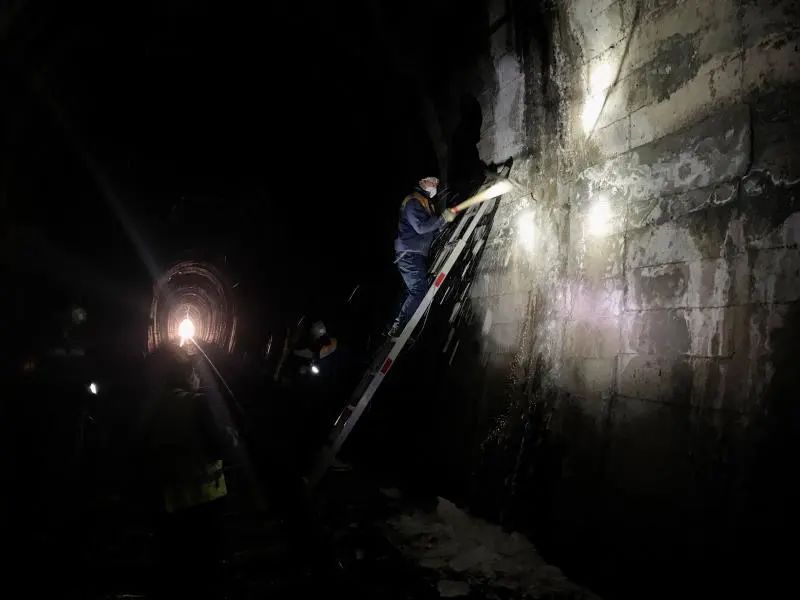 为确保复工复产和抗疫物资运输安全,近日,中卫工务段平凉桥隧车间的隧道打冰队员们积极申请上线,坚守防疫战线,上演了一场隧道打冰“接力赛”。