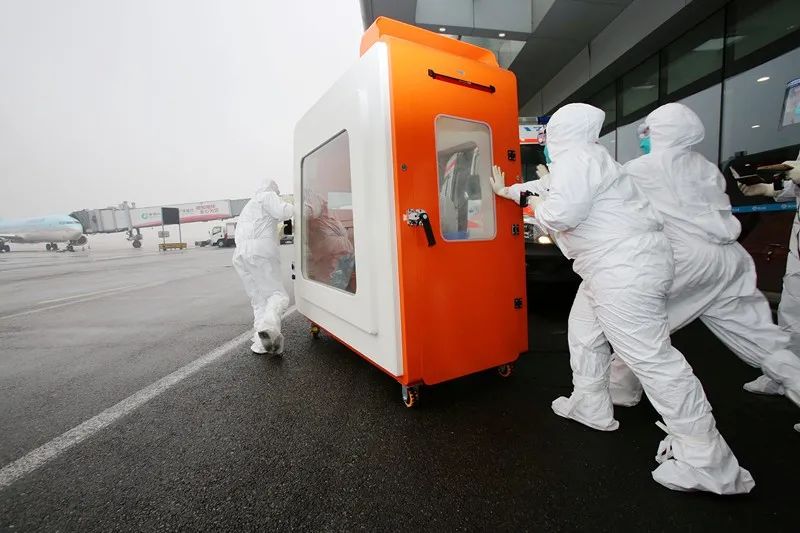 北京海关关员通过负压隔离单元对疑似病例进行隔离转运 摄影/邓旭