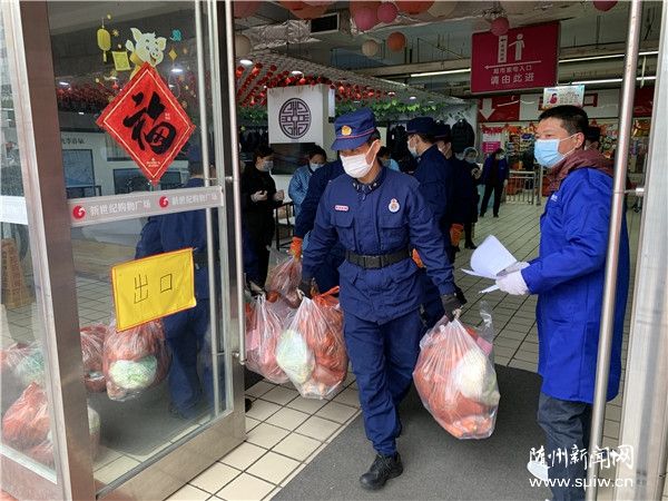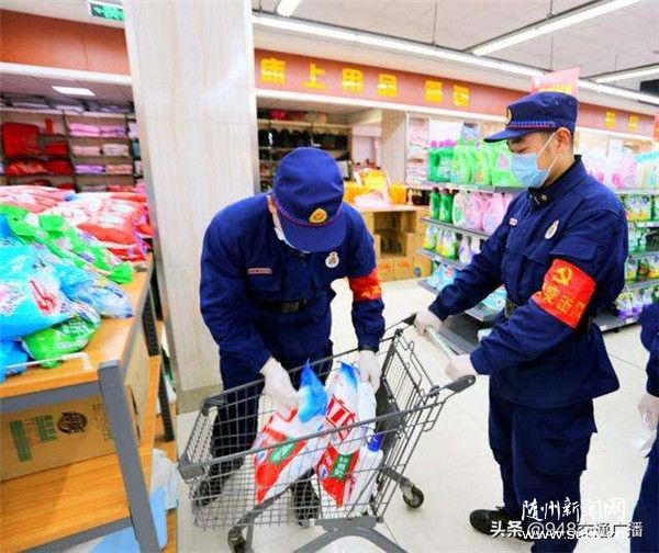 3月2日,随州曾都消防救援大队8名突击队队员们做好防护,给配送车辆消毒后,来到购物中心新生活超市,开启了一天的配送工作。