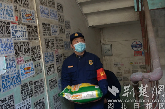 家住4楼的程忠华夫妇,老两口因上了年纪上下楼不便,便委托社区工作人员帮忙采买生活物资。潜江市消防救援大队“119党员突击队”得知后,赶在饭前将米面送到了程老爷子家中。