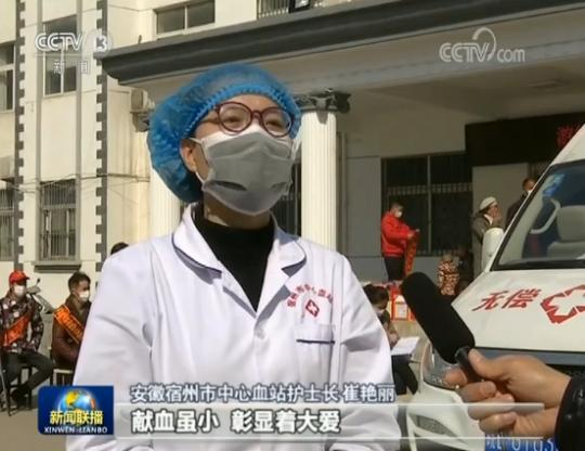 安徽宿州市中心血站护士长 崔艳丽:献血虽小,彰显大爱。只要我们万众一心,众志成城,肯定能打赢这场疫情防控总体战。