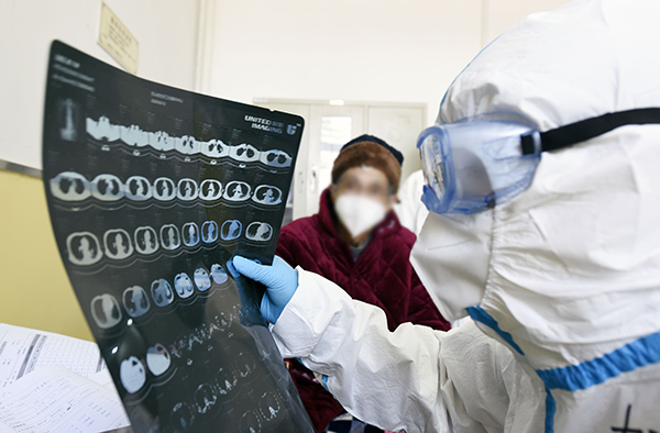 医生正在查看康复患者的肺部CT 黎婉婷 摄
