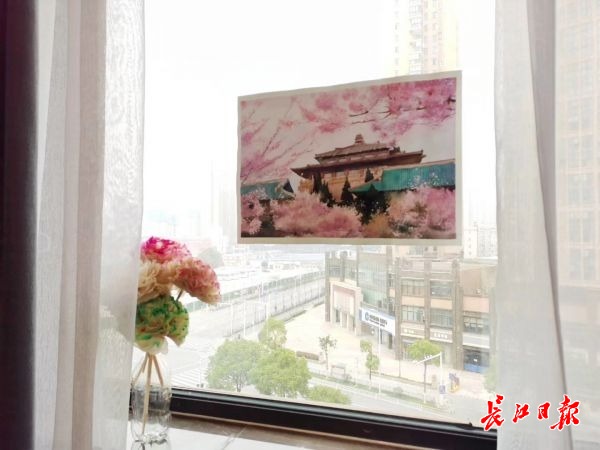 3月4日,一幅武大樱花的临摹水粉画“大功告成”,她发了一条朋友圈,并撰文:春天已到,希望不远,武大樱花,不见不散,加油。随后,便将这幅画贴在了窗户上。
