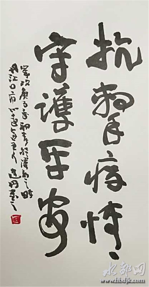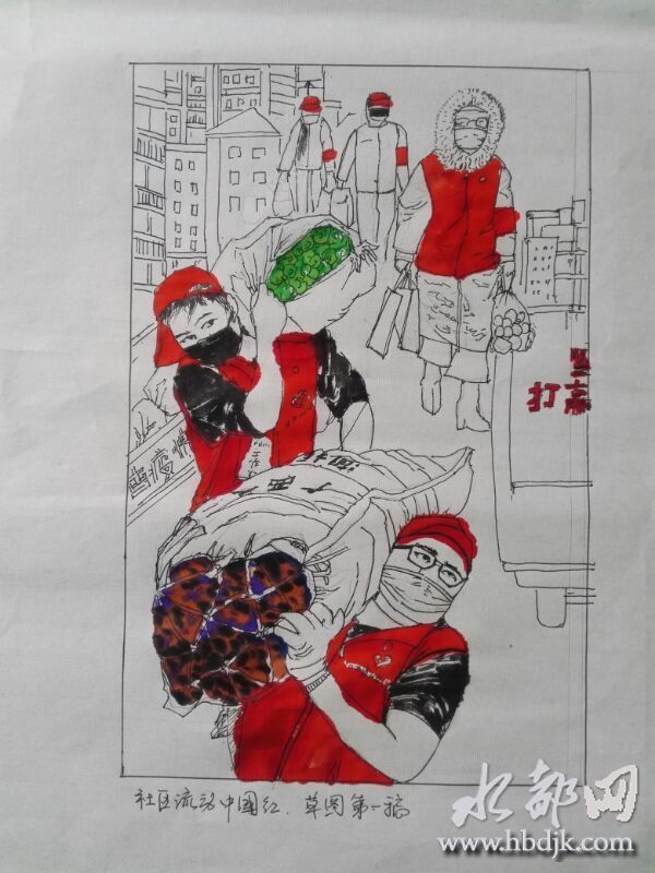 市委宣传部干部殷进绘制的《社区流动中国红》画作,令人感动。省书法协会理事裴建丹书写的《抗击疫情守护家园》书法作品,振奋人心。