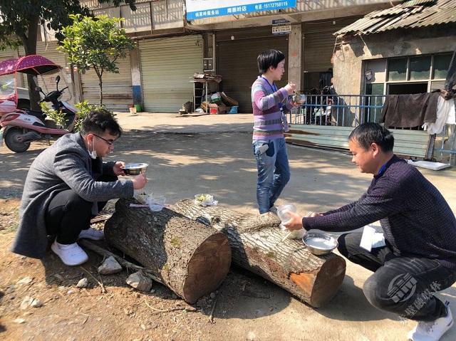 这是一群刚刚搬运完蔬菜生鲜的志愿者