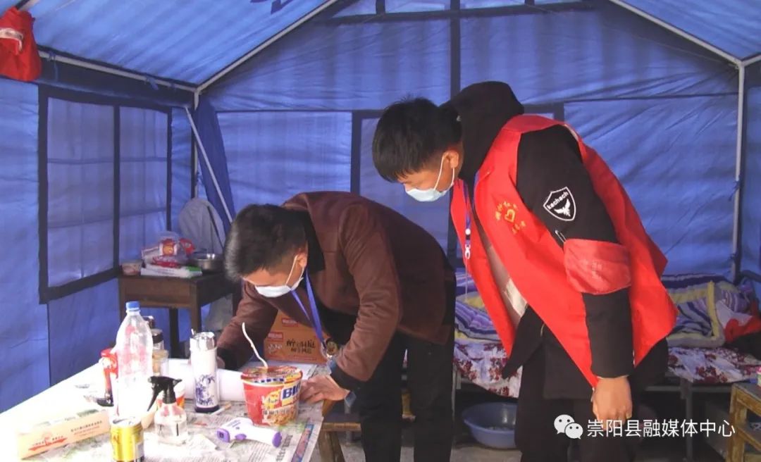 据了解,殷帅值守的是马桥村7组的卡点,这个卡点与白霓镇交界,人口流动频繁。为了守好卡点,殷帅每天24小时值守在这里,刚开始值守点没有帐篷,只有一个简单的雨棚和一个小床,恶劣的环境加上寒冷的天气,让殷帅没少吃苦头。由于晚上光线暗、气温低,总有村民想趁机偷偷过卡,“牛脾气”的殷帅干脆抱床被子,就坐在外面“死”守,硬是没放过一个人。