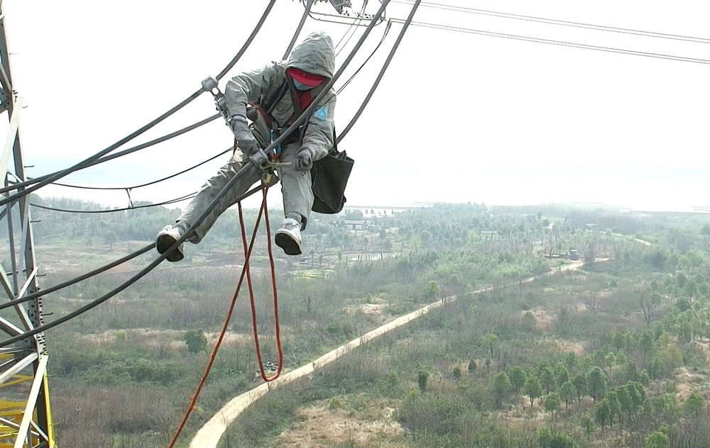 3月4日,国网湖北电力检修公司检修员胡洪炜在检修线路。新华社发