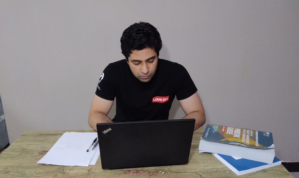 巴基斯坦籍志愿者哈荣在和他的团队联络(资料照片)。新华社发