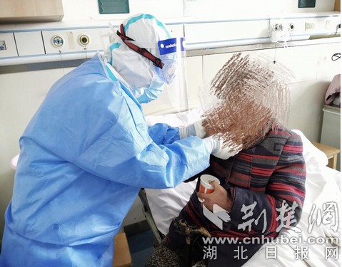 救治期间,患者尿湿了裤子,杨丽萍护士长立即给她购置新裤子新棉袄,并与护士们一起给老奶奶更换。由于患者拒绝治疗,核酸检测迟迟不转阴性,李小民书记多次至患者床边,俯身与老奶奶交谈,并叮嘱管床护士将药物搅拌至饭菜内安抚其进餐。指挥部专家组成员每天两次视频会诊,医生护士们时时密切关注。