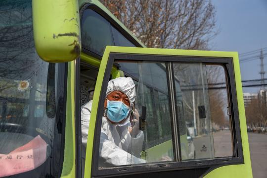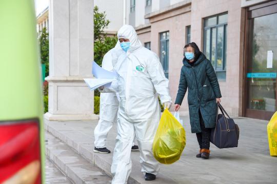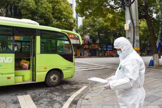 自2月22日起,向军和同伴累计将100多名出院患者安全送到“康复驿站”隔离点。向军欣慰地说:“最近两天送的人,比起初要多,我们离胜利也更近了。”新华社记者 胡虎虎 摄影报道