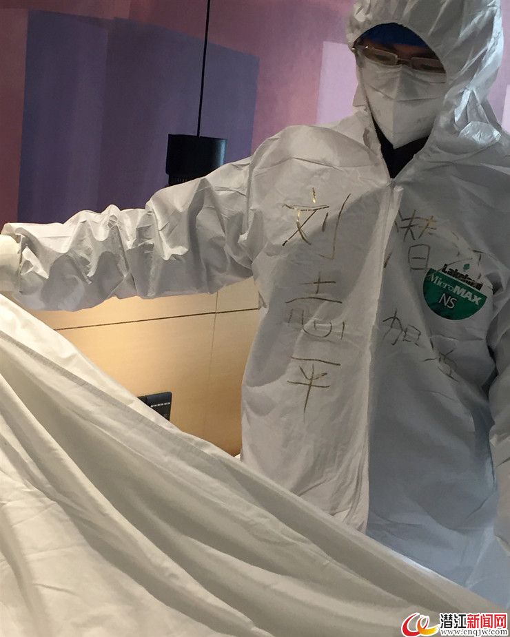3月3日,五楼几个七十多岁的爹爹婆婆的电视黑屏,刘志平自告奋勇,穿戴好防护装备,爬上5楼一个个房间调试电视,老人们连声道谢,他成了家电维修工;3月5日,四楼413房间的马桶堵得严严实实,又脏又臭十分恶心。刘志平“折腾”了半天终于疏通,汗水湿透了防护服,汗蒸得护目镜看不清方向,他当了回“掏粪工”……