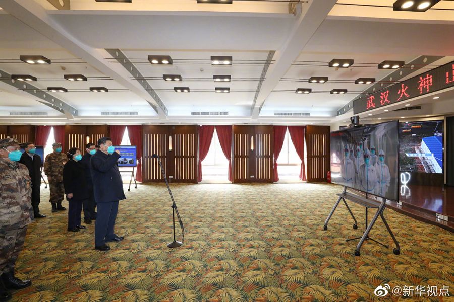 习近平在火神山医院指挥中心视频连线感染科病房,与病房内患者和医务人员亲切交流。习近平勉励患者:要树立必胜信心,保持乐观向上的精神状态,主动听从医嘱,积极配合治疗,这有助于战胜病魔。习近平祝他们早日康复!