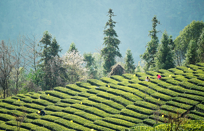 随着气温回暖,恩施市30余万亩春茶进入采摘期。该市在严格做好疫情防控的同时,抓紧时机采摘鲜叶,全力确保春茶上市,助农增收。(杨顺丕 徐山棋 摄)