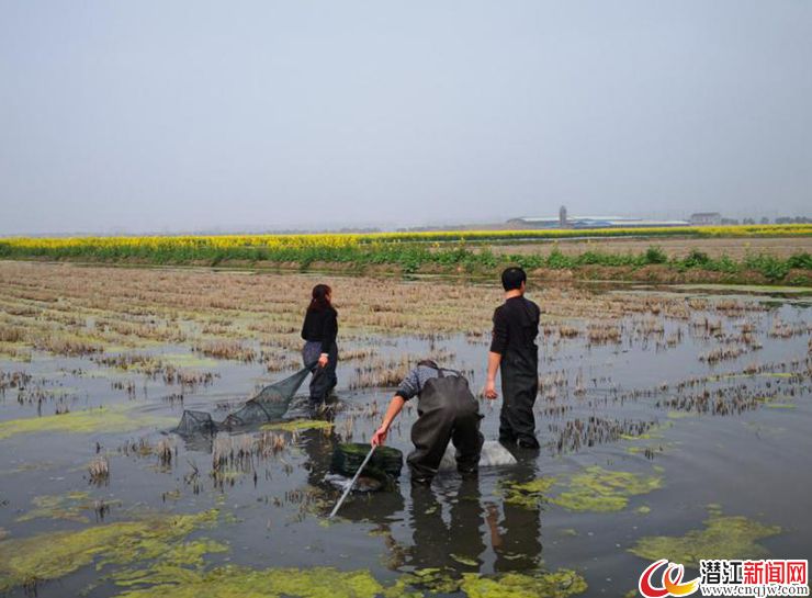 3月8日,中河队职工聂团结正忙着在他的90亩“虾稻共作”田里投食、肥水,今年是他养殖小龙虾的第6个年头。