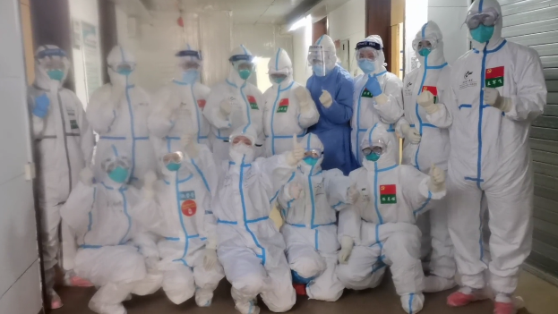 一大早,医疗队队长张忠德带领全体队员进入隔离病区,对符合出院标准予以出院的患者表示祝贺;对病情明显转轻但还需转入其他定点收治医疗机构进行治疗的患者给予抚慰,提醒他们饮食和治疗上的注意事项;并对空出来的病房、床位及病区进行清洁整理及终末消毒。
