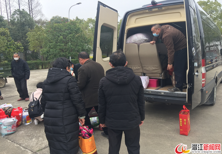 当天下午,熊口管理区官庄垸分场的18名赴荆州务工人员从各地往出发点集结,进行登记、测体温等准备工作后,16点30分登上前往荆州市骏达科技有限公司的大巴车。