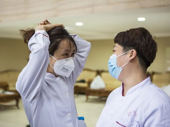 那时进红区没有专门负责感控的老师,就是两位护士互相帮忙穿防护服。也没有N95口罩,还是16层的纱布口罩,每次进去要戴两三个,憋气的感觉比现在严重得多。万娟说:“还得说那会儿年轻,虽然难受,但是忍忍4个小时很快就过去了。”