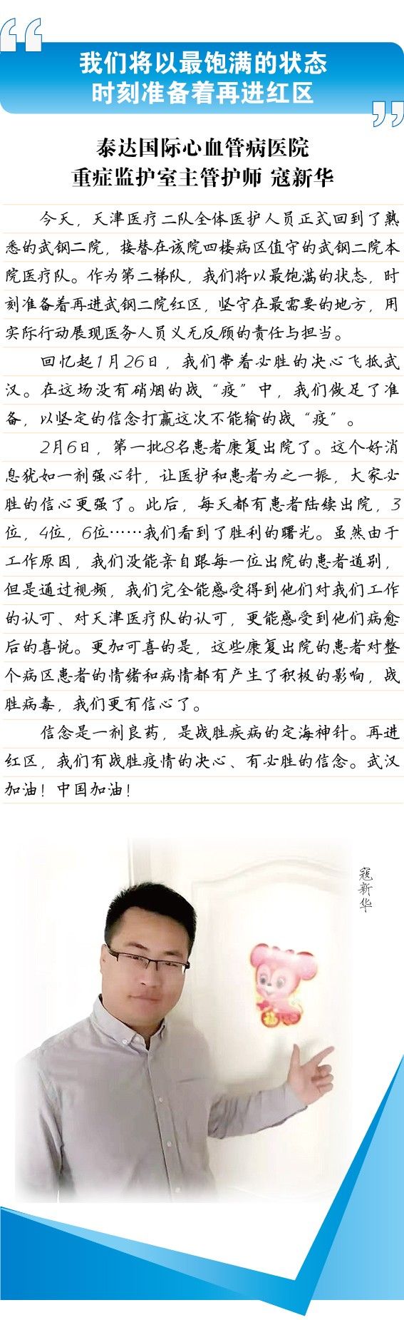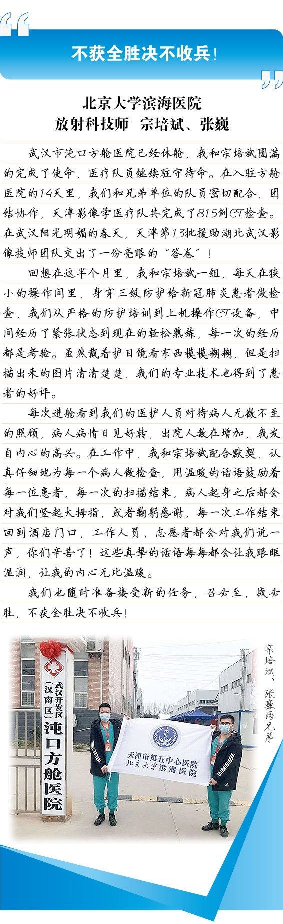 点击此处查看新闻链接 天津医疗二队重返“红区”:保证完成任务!