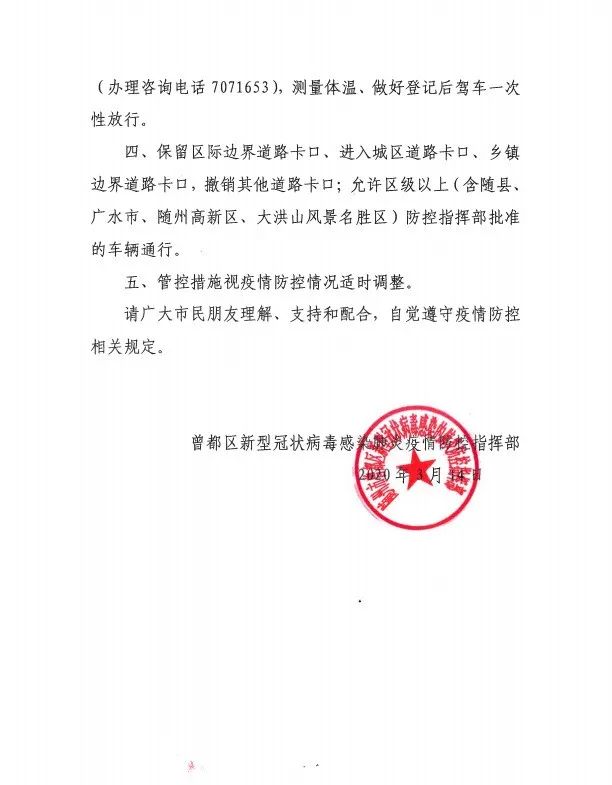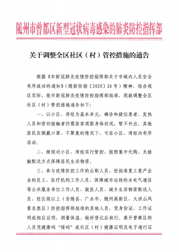 曾都区:关于调整全区社区(村)管控措施的通告
