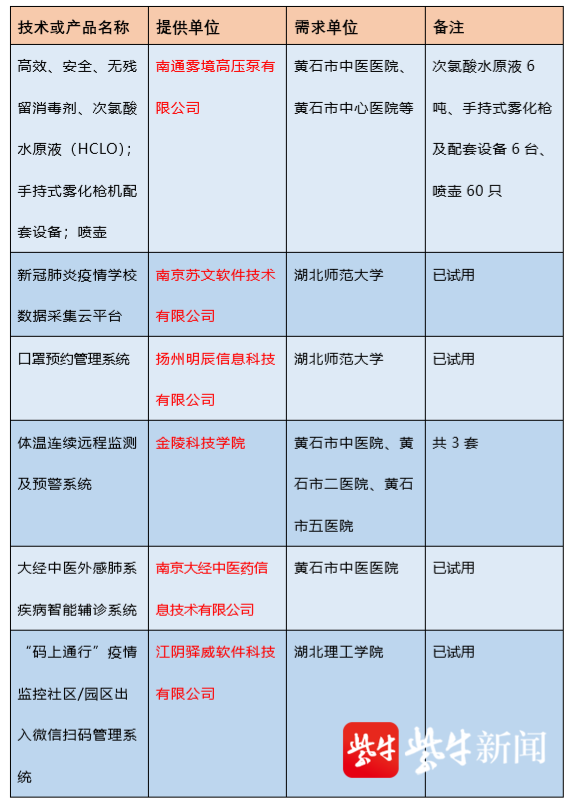 目前,部分供应项目已在去往黄石的路上。防疫需求对接还在持续增加中,部分无偿项目已供不应求。复工复产相关需求项目及供不应求需求项目将持续征集。