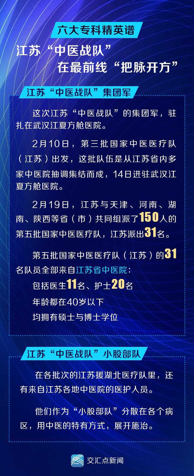 而在各批次的江苏援湖北医疗队里,还有来自全省各地中医院的医护人员。他们作为“小股部队”分散在各个病区,用中医的特有方式,展开施治。