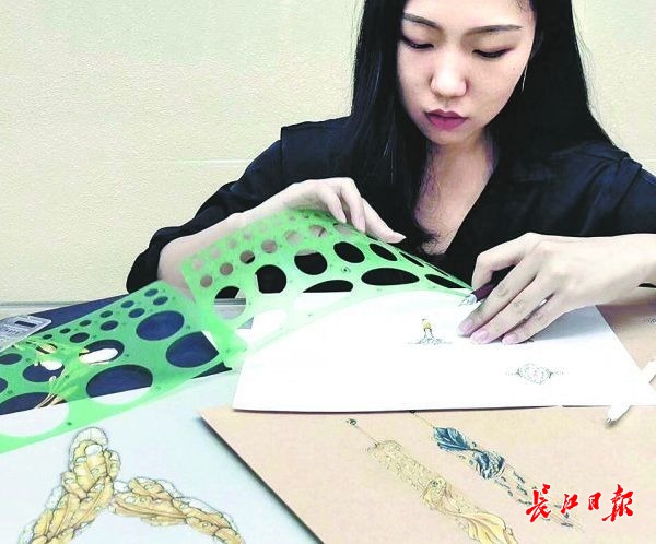 这些设计出自27岁女设计师方龙慧子之手,她也是中国地质大学(武汉)珠宝学院GIC首饰设计手绘教师,目前宅在武汉家中。 14日,长江网记者联系上在东湖社区公婆家中的她。