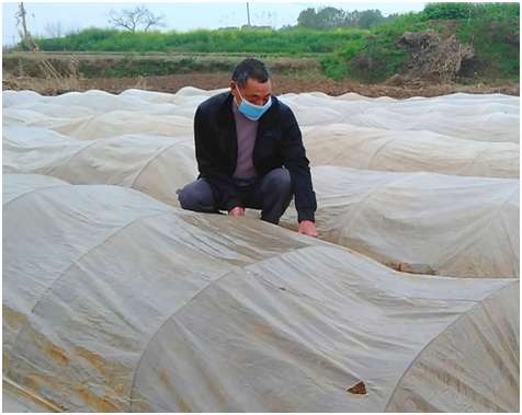 每天中午时分,王才远都会带上口罩准时到地里转悠,指导部分缺乏种植经验的村民排苗、插竹片、盖薄膜,让大家了解更多的育秧技术,有时发现大家防疫措施不当会立刻制止。“我现在既是农技员,又是疫情宣传员。”王才远露出憨厚朴实的笑脸。