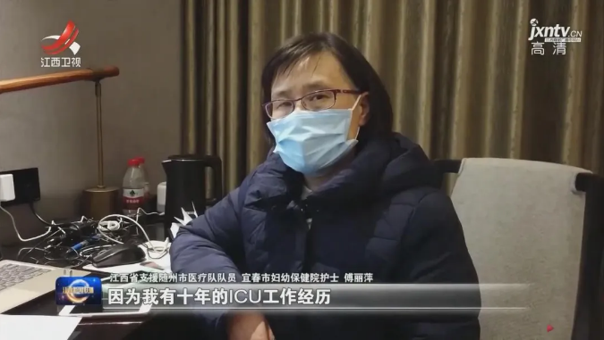 江西省支援随州市医疗队队员 宜春市妇幼保健院护士 傅丽萍:是有失落的,我说我想加入抗疫的前线,因为我有十年的ICU工作经历。