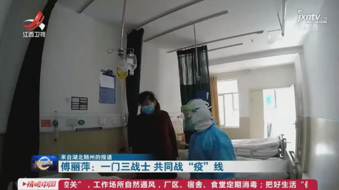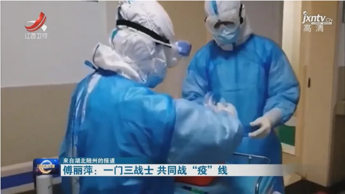 在江西省支援随州市医疗队中,有位叫傅丽萍的护士,她的丈夫、弟弟都奋战在抗“疫”一线,一门三战士,互相鼓励,互相支持。