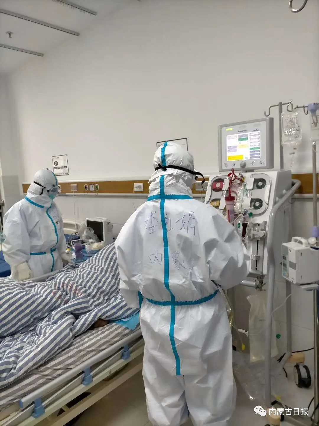内蒙古医科大学附属医院护士王坤,主动中断婚假,报名参加援鄂医疗队,在荆门市第一医院抗击疫情。同是医务工作者的妻子含泪送他上了“战场”,每天都会关心他的情况,一个半月来,妻子说得最多的不是思念,而是“加油”!他在一线工作,他的妻子也工作在后方救死扶伤的一线。队友们都开玩笑说,他们是一对“特殊”的战友。