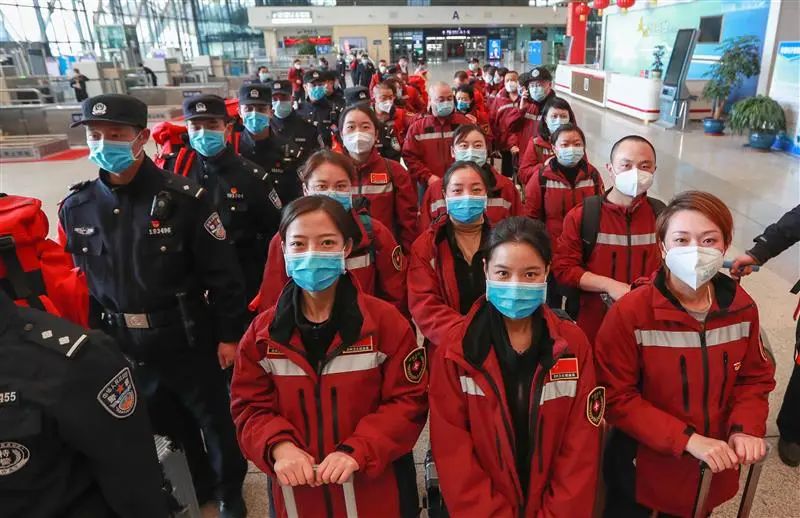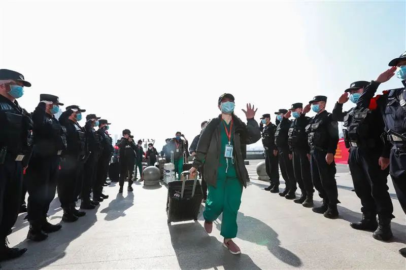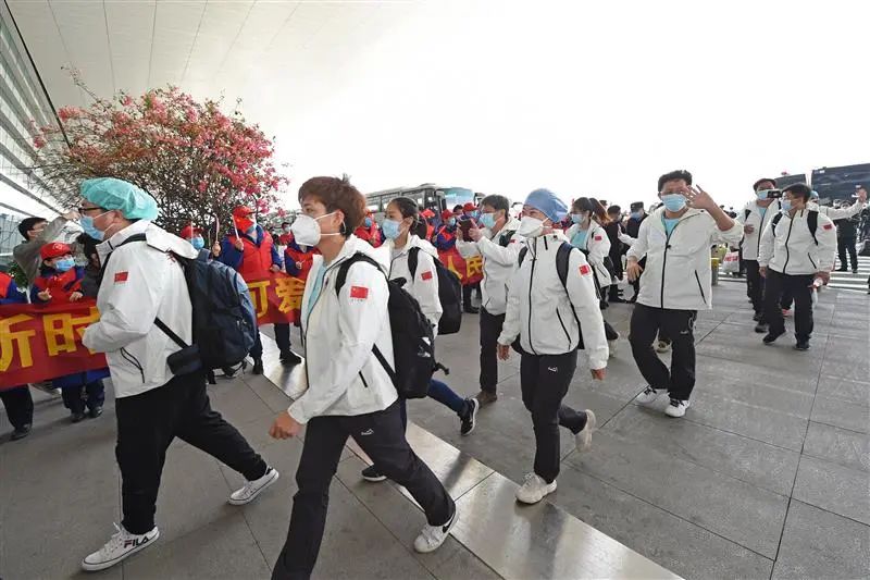 令人感动的是,天津医疗队员启程之时,武汉市民在阳台齐声高喊:再见了,谢谢白衣天使!