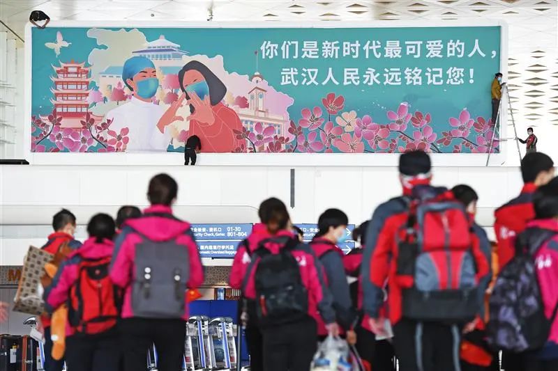 当天,青海省援鄂抗击疫情医疗队102名队员启程离汉,他们将回到阔别已久的家乡。