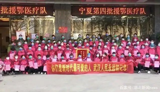 在援汉32天后,宁夏第四批援鄂医疗队搭乘下午两点的飞机返回银川,现场武汉市汉阳区新冠肺炎疫情防控指挥部为103位医疗队队员送上鲜花和祝福,并承诺未来日子里,医疗队的队员若再来武汉市汉阳区,所有的住宿和旅游免费。