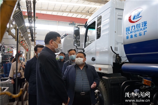 随州日报讯(全媒记者张琴、见习记者王聪莹)3月19日,随州市委书记陈瑞峰前往包保服务企业程力集团现场办公,协调解决企业复工复产和发展中存在的困难和问题。他强调,要深入学习贯彻习近平总书记重要讲话精神,深刻认识统筹抓好疫情防控和经济社会发展的极端重要性,因时因势调整工作着力点和应对举措,在确保疫情防控到位的前提下,全力推进企业全面复工复产,快速达产满产,努力完成全年目标任务。市委常委、市委秘书长刘宏业,副市长吴超明,有关部门主要负责同志等参加活动。