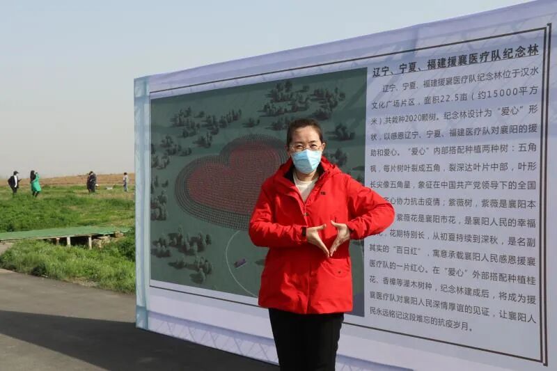 按照规划,本次建设的辽宁、宁夏、福建援襄医疗队纪念林,面积为22.5亩(约15000平方米),共栽种2020棵树。纪念林设计为“爱心”形状,以感恩辽宁、宁夏、福建医疗队对襄阳的援助和爱心。“2020,既是年份,也代表‘爱你爱你’。”襄阳市鱼梁洲开发区党工委副书记、管委会副主任李晓波说。