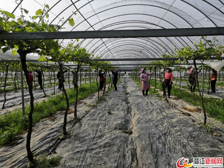 走进庆丰村金浪果蔬种植专业合作社,一排排白色大棚整齐排列,大棚下葡萄藤已长出了细长的枝条和嫩绿的叶子,戴着口罩的工人正分区域对葡萄藤进行春季管护。金浪果蔬种植专业合作社种植葡萄500亩,共有鄞红、早夏黑、美人指、阳光玫瑰、维多利亚5个品种,将在6月上市。