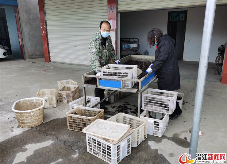 不仅如此,每个小龙虾收购交易点都固定有一名党员负责管理及村干部巡查监督,引导虾贩做好疫情期间防护工作。孙桥村支部书记漆良卫说:“我们在现场主要是引导虾农保持1.5米距离排队卖虾,避免出现人员聚集,同时指导收购点的工人佩戴口罩,做好每天2次固定消毒。”