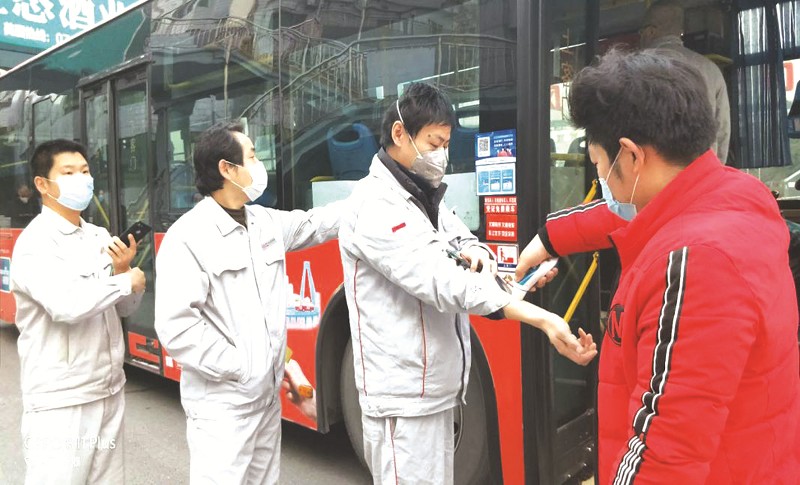 严格把好 “安全关”,市城市公交集团在各线路首末站设置清洁消杀点,坚持 “一车不落,全面覆盖”标准,对所有营运车辆实行 “趟通风、趟清洁、趟消毒”等防疫措施。600余名公交志愿者分布在各公交场站、站台、车厢,查看 “绿码”、测量体温、维护秩序,为乘客提供服务咨询,保障公交平稳有序运行、市民安全放心出行。