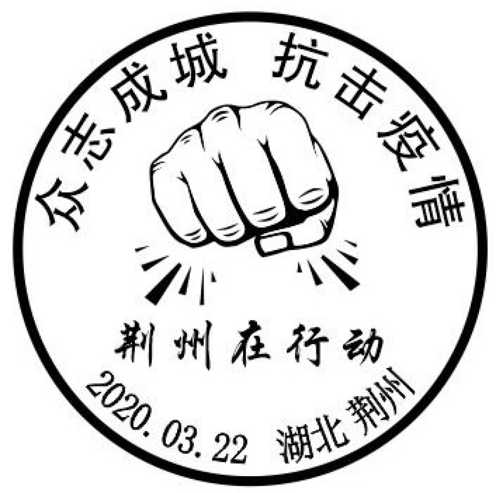 3月19日下午,湖北省赴粤返岗就业农民工欢送活动在荆州高铁站举行,省委书记应勇亲自送行。3月20日,广东、海南支援荆州的两支医疗队凯旋,荆州人民沿街相送,心中尽是难舍。荆州邮政定于3月22日启用一款“众志成城,抗击疫情”纪念戳,戳图为一只击出的铁拳和“荆州在行动”字样,表达出荆州人民坚决打赢湖北保卫战的决心和信心。