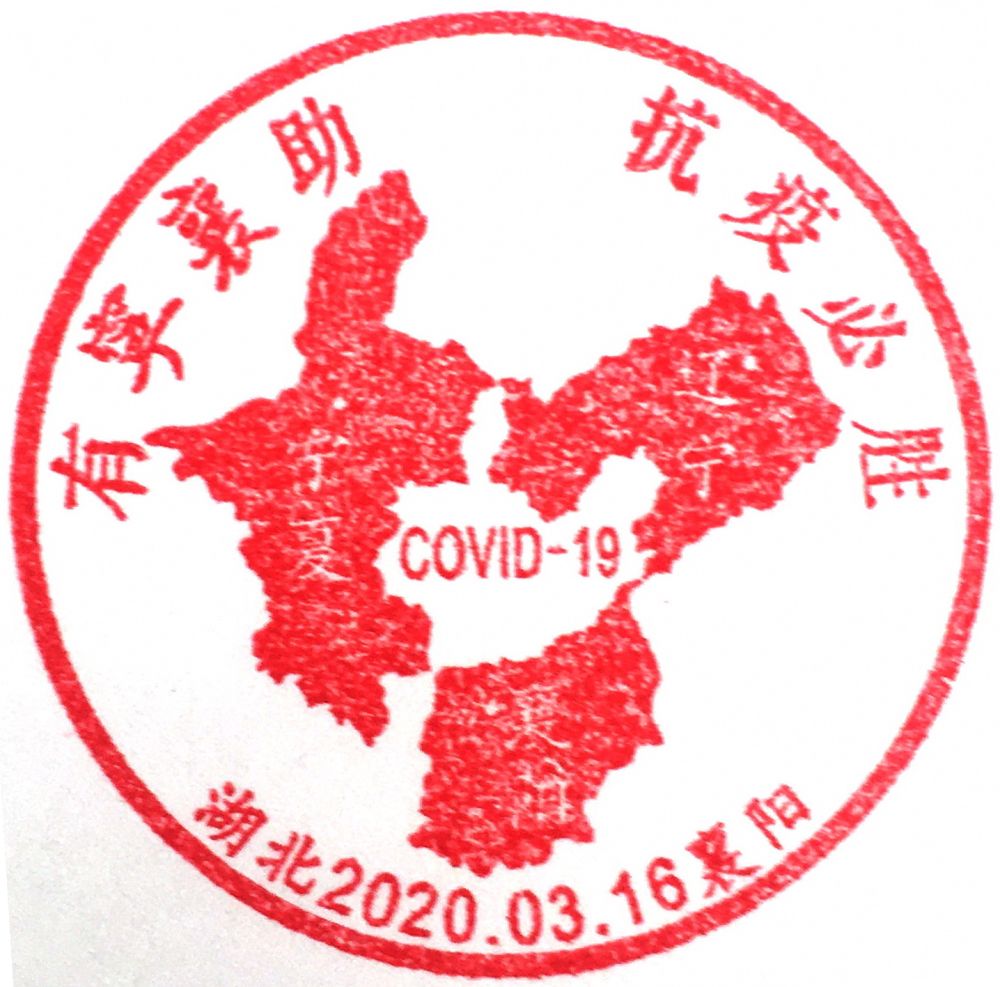 辽宁省和宁夏自治区对口支援襄阳市。有这两个“宁”对襄阳的硬核“襄”助,襄阳人民对完胜疫情充满信心。襄阳邮政于3月16日启用一款“有‘宁’‘襄’助,抗疫必胜”纪念戳,戳图为宁夏、辽宁和襄阳地图。