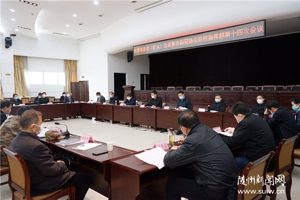 随州日报讯(全媒记者 张琴)3月20日,市委书记陈瑞峰主持召开市委常委会(扩大)会议暨市新冠肺炎疫情防控指挥部第十四次会议,传达学习习近平总书记在中央政治局常委会会议上的重要讲话精神,研究部署有关工作。