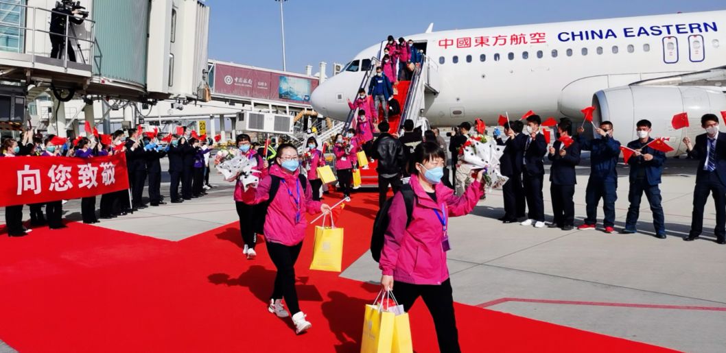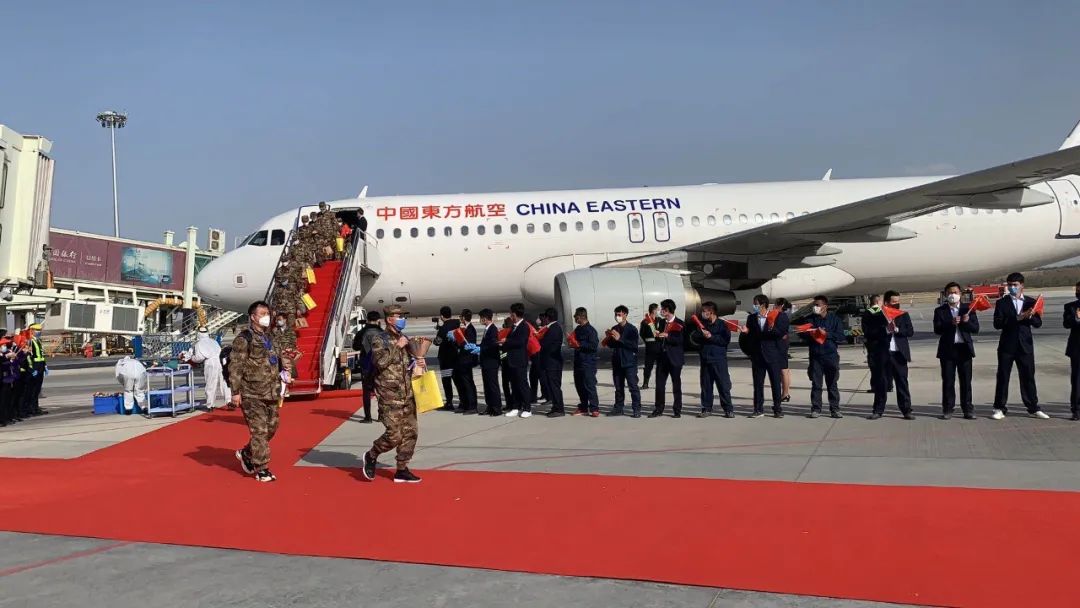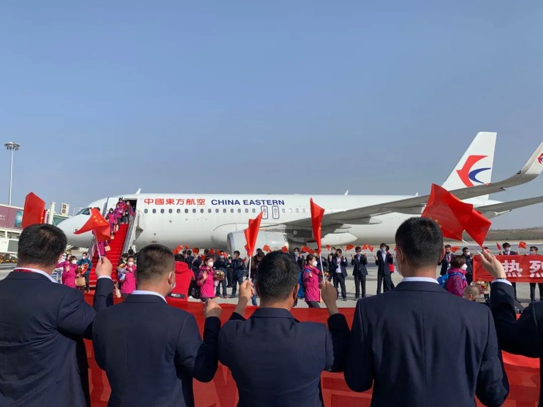 3月20日16时左右,宁夏支援湖北省第一批、第三批医疗队圆满完成救治任务后,从武汉飞抵银川。