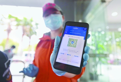 早上9时许,中百仓储漫时区店门口,一位市民准备进店购物,超市工作人员请他先出示手机小程序中的健康码,显示为绿色,然后测量体温正常才放行。