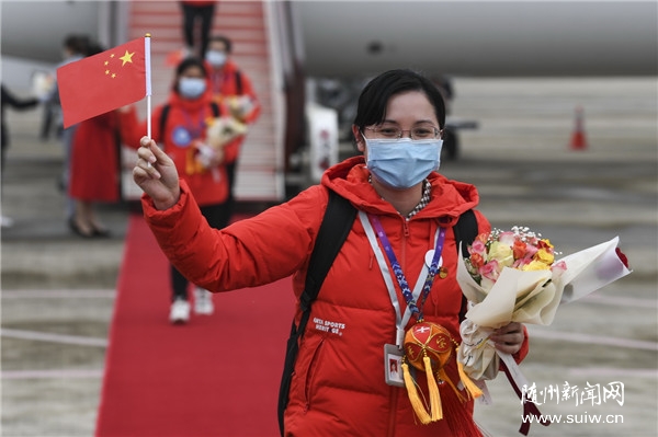 3月20日,广西支援湖北医疗队第二批返回的136名医护人员飞抵南宁。新华社记者 曹祎铭 摄