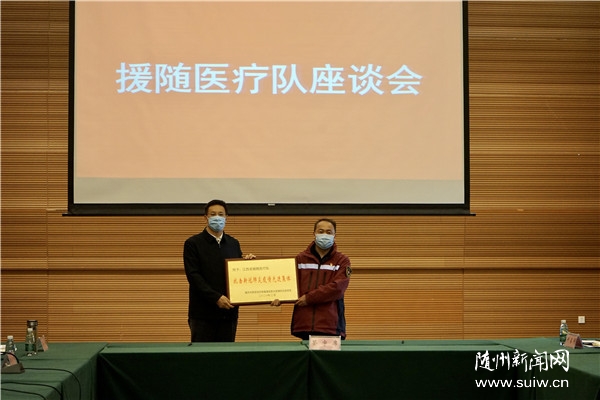 江西省支援随州市前方指挥部指挥长、江西省委统战部常务副部长陈敏讲话。市委副书记、市长克克讲话并为江西、内蒙古援随医疗队颁发“抗击新冠肺炎疫情先进集体”牌匾。市委常委、常务副市长林常伦主持座谈会。副市长郑晓峰宣读市疫情防控指挥部《关于对江西省、内蒙古自治区援随医疗队表彰的决定》。市政府党组成员刘光海等参加活动。