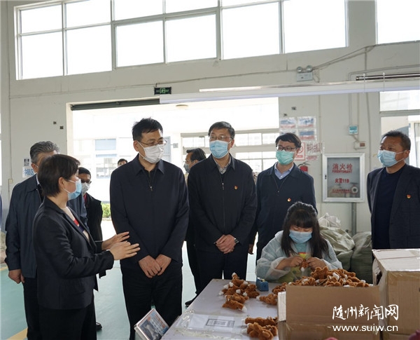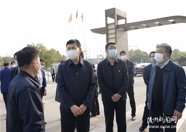随州日报讯(全媒记者张琴)3月23日,市委书记陈瑞峰到随县调研企业复工复产、春耕生产和产业扶贫等方面工作情况。他强调,要深入学习贯彻习近平总书记关于疫情防控系列重要讲话和重要指示批示精神,按照党中央决策部署和省委工作要求,坚持“防控为先、统筹为要、科学精准、稳妥善后”的原则,统筹抓好复工复产、春耕生产、脱贫攻坚等工作,努力跑出企业复工复产和脱贫攻坚的加速度,把疫情造成的损失降到最低限度,确保实现决胜全面建成小康社会、决战脱贫攻坚目标任务。