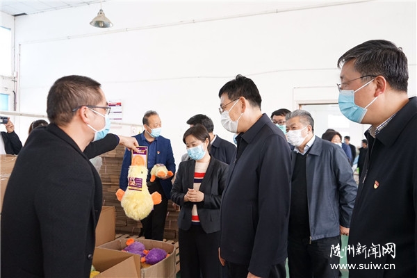 在做好疫情防控的前提下,加快推进企业复工复产、尽快实现达产满产,是当前的一项紧迫的任务。陈瑞峰先后来到随县经济开发区鸿荣盛玩具有限公司、许继三铃专用汽车有限公司,调研企业疫情防控和复工复产情况。他走进生产车间、样品间,查看生产情况和产品,仔细询问企业采取的防控措施,了解企业的产品、研发、市场、效益、资金等方面情况,听取复工复产和生产经营中存在的困难和问题。陈瑞峰嘱咐企业负责人,要高度重视企业内部疫情防控工作,坚决落实疫情防控主体责任,抓紧抓实抓细各项疫情防控措施,坚决防范因复工复产带来的风险;要严格落实安全生产责任制,坚决防止安全事故发生;要坚定发展信心,瞄准发展目标,继续做优产品、做强品牌、做大市场。陈瑞峰要求,各地各有关部门要着力优化营商环境,加快畅通人流、物流、资金流,提高企业返岗率、复工率、达产率;包保企业的各级领导和部门要下沉企业一线,为企业送政策、送服务,吃透上级政策,摸清企业实情,抢抓政策窗口期,提出具体化、可操作的支持政策清单,让企业享受最大的政策红利。