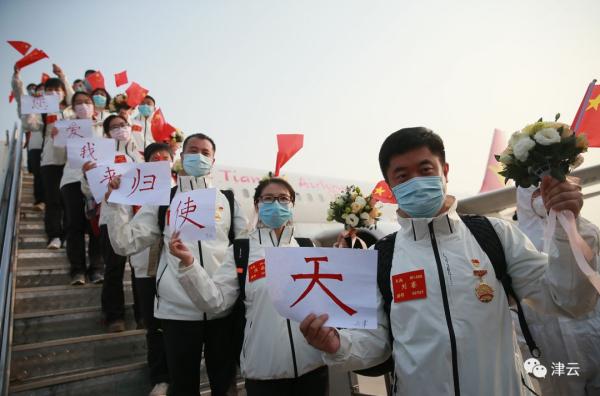“‘责’不容辞、‘义’不容辞、‘情’不容辞。”“天津有,恩施就有!”带着1500万海河儿女的深情厚谊,天津援恩医疗队以“竭尽所能、千方百计、全力保证”为己任,胜利完成了对口支援任务。3月24日16:24,天津援助湖北恩施医疗队106人搭乘天津航空专机返回天津。