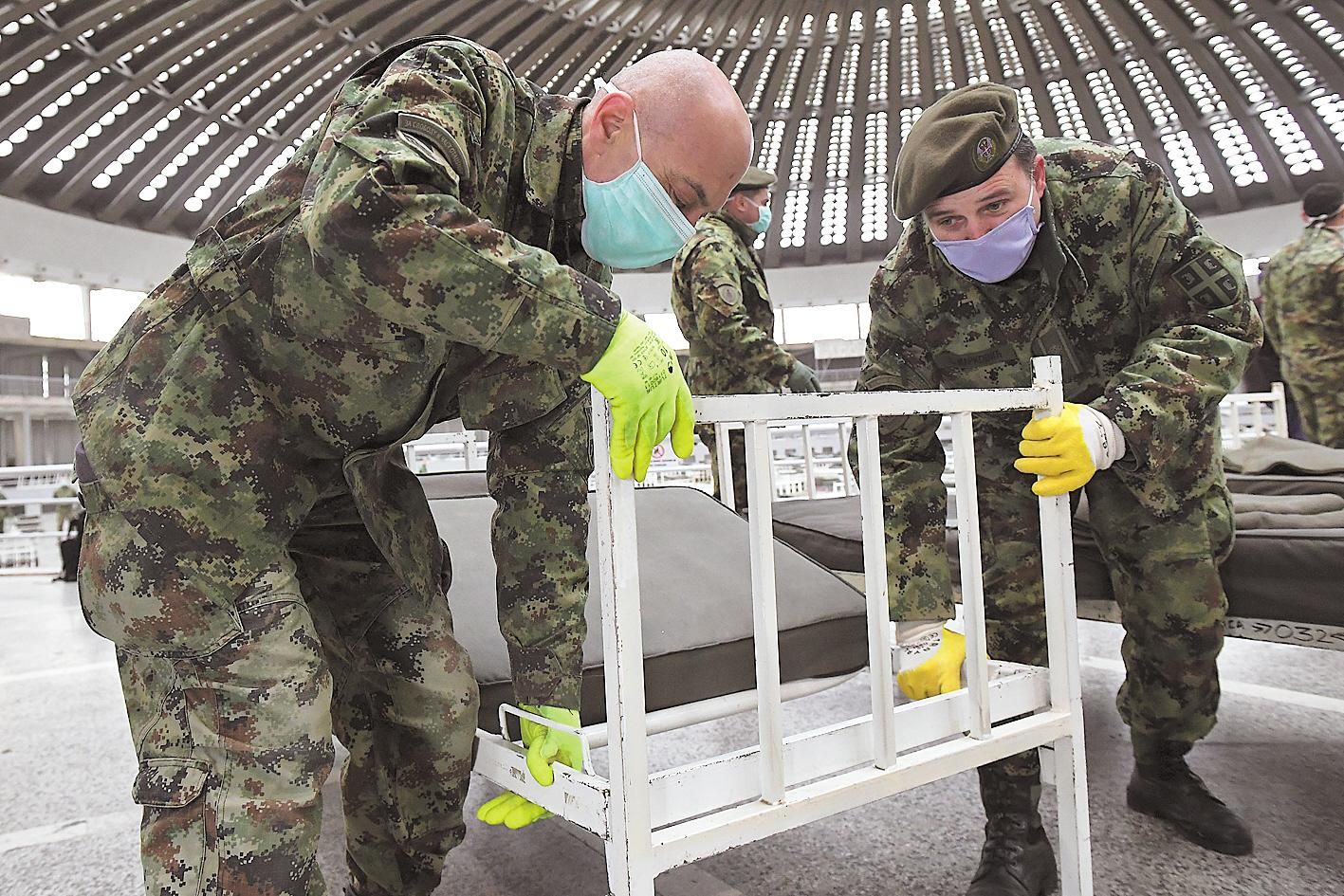 塞尔维亚国防部3月24日说,在中国专家组建议下,塞方着手在贝尔格莱德建一座方舱医院。(新华社发)