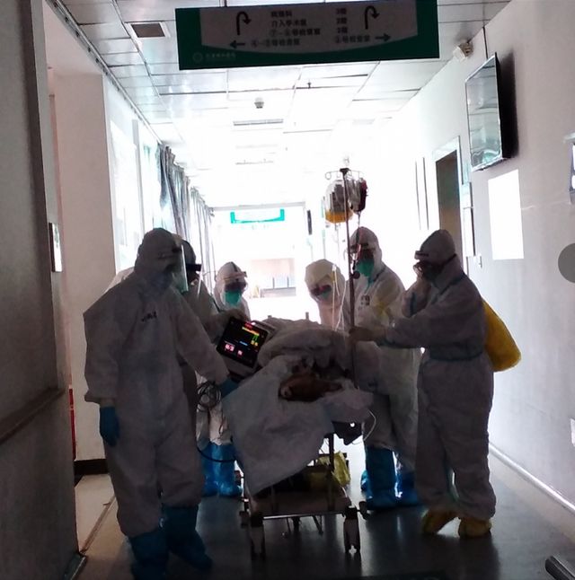 这段不到500米的路,步步惊心!他们行经住院楼的多个区域,通过院外公路,穿越封闭数月的铁门,来到医技楼。ECMO、呼吸机、氧气筒、心电监护仪、微量注射泵、抢救箱、呼吸球囊等诸多设备环绕床旁。